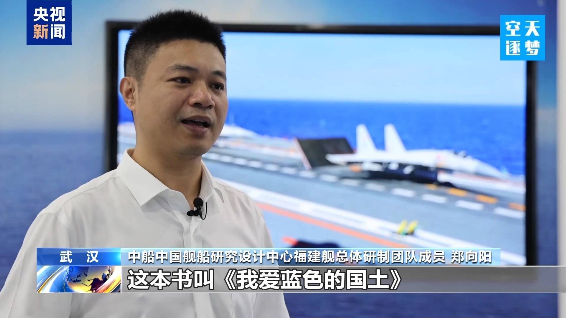 中船中国舰船研究设计中心福建舰总体研制团队成员 郑向阳:这本书叫《我爱蓝色的国土》,名字我记忆非常深刻。这里面讲到了我们的百年航母梦,但是只是讲到了梦想,那个时候在我的心里面就植入了一个为国家为海洋为航母事业作贡献的初心。