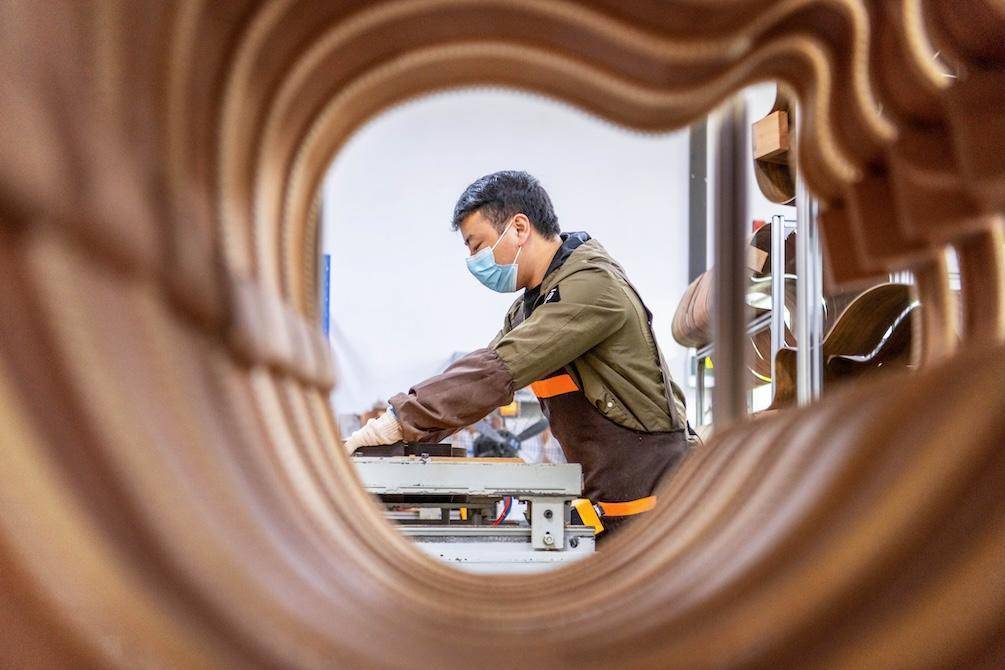 工人在生产车间赶制吉他。蔡小平摄 11月4日,工人在湖南省永州市东安县吉他产业园楚门吉他制造有限公司生产线上赶制出口订单吉他。临近年末,湖南省永州市东安县吉他产业园众多企业一派繁忙,工人在生产车间赶制订单产品,冲刺“全年红”。(蔡小平 高源鑫)